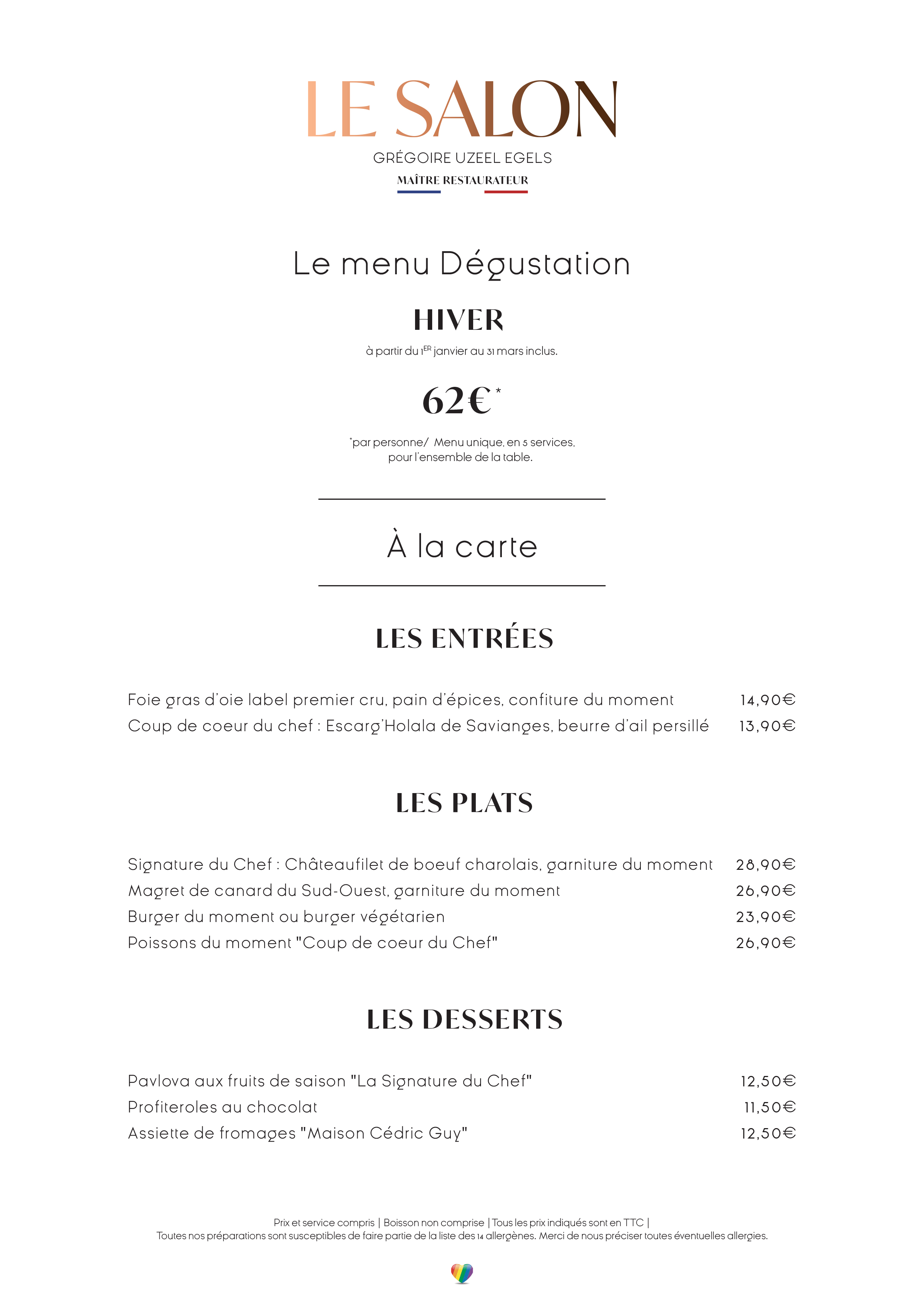 Les idées du jour complèteront cette carte. Demandez le menu !